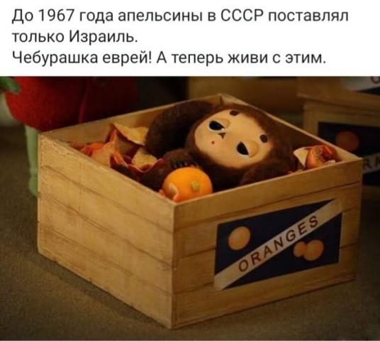 Ох уж мне эти дети тырнетов... :facepalm: Кто-то открыл для себя "апельсиновую сделку" 1964 года с Израилем - и по-нес-лось про Чебурашку. :) Камрады, вообще-то и до этой роковой даты в СССР апельсины встречались. И даже до создания государства Израиль откуда-то их привозили, вот ей-же ей, научный фактЪ. :)