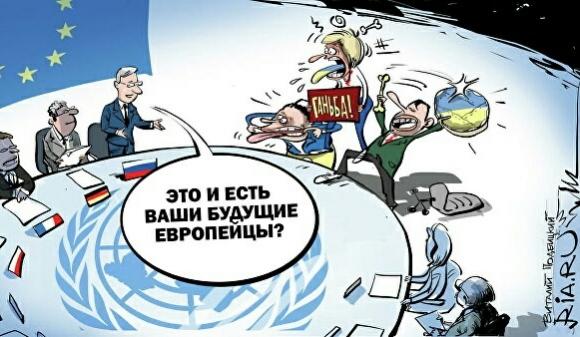 Меркель - О, либер, это шайзе попхафимо. Ихь шрайбен фам Минск-3. (Зельцу) Гей вэк отсюда - думмкопф!