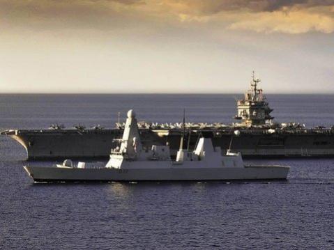 Американский авианосец «Энтерпрайз» (USS Enterprise) и британский эсминец HMS Daring (на переднем плане)