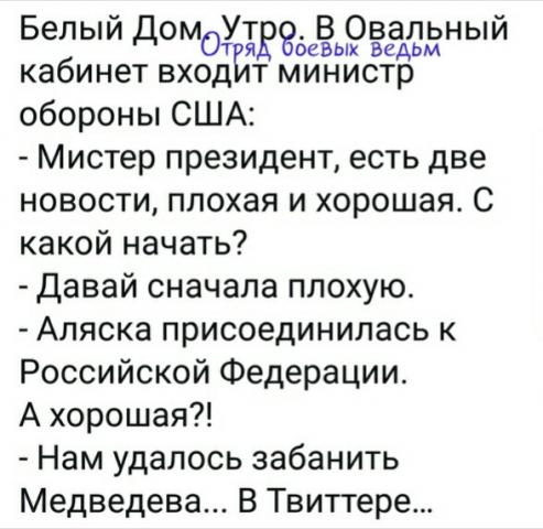 - Дианка, а чего это в ленте у всех фото Медведева?
