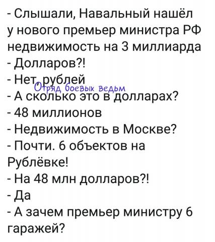 - Не придуривайся, - ответил Пётр Аркадьевич. - Ты думаешь, премьер-министр в России щас реально что-то решает? Он для мебели положен при нынешней системе власти в принципе. Чтобы так красиво выглядел, прекрасная обивка, показать и сесть приятно.