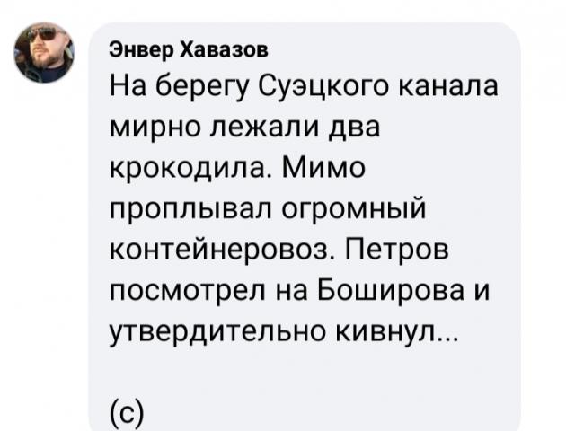 Потому, как сообщает ИА «Панорама» (https://panorama.pub/news/kapitana-p...rdenom-druzhby) Президентом России подписан указ о награждении капитана панамского контейнеровоза Ever Given Орденом Дружбы...