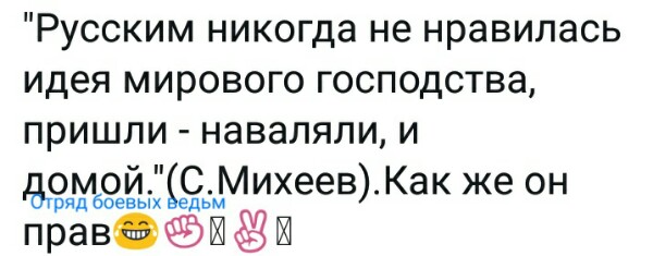 То, что русский верит в то, что русские самые правильные - это совершенно нормально. :) Но бЯда начинается там, где русский хочет, чтобы ВСЕ В МИРЕ СТАЛИ РУССКИМИ. :)