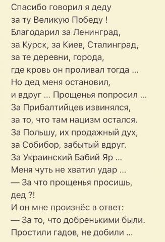 И кстати о грузинах: вот ведь враждебная нынче нация, аж вот вплоть до войны - а ничо так, никто из России не выгоняет и в ней самой не гнобит. В саратовской нашей "национальной деревне" никто не громит грузинское подворье, не размалевывает всяким обидным и вообще не ведет себя як смэрэковы мавпы з смолоскипамы. :) А уж про степень уважения к некоему Джугашвили из Гори и вовсе говорить не приходится. ;) Причем никто не устраивает истерику по тому поводу, что он до конца жизни ругался по-грузински вместо русского мата - хотя и его мог ввернуть, даже документальные свидетельства остались. :)
