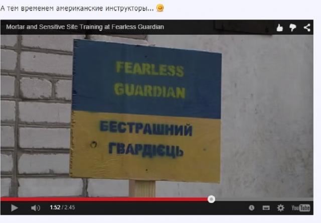 После этого на видео была продемонстрирована стрельба из миномета американскими военнослужащими в присутствии украинцев. Во второй части видео показано, как американские инструкторы учат украинских силовиков проводить обыски в здании.