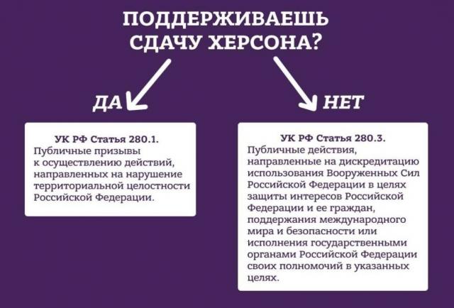 ...посередине должна быть еще одна стрелочка с надписью "это я сдал Херсон" и статьей 280.2 -