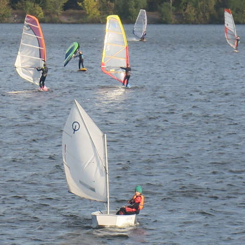 Детский яхт-клуб. Посреди Сибири, на озере Большое. Тренер-энтузиаст занимается с парой десятков пацанов и девчонок из окрестных сел, половина - из "неполных семей". Клуб родился меньше 10 лет назад на полузаброшенной базе отдыха. Единственный сельский детский яхт-клуб в России, понимать надо. :) "Оптимист" - это в общем-то класс яхт для детишек 7-14 лет, пластиковая ванночка под парусом с простынку размером. :)