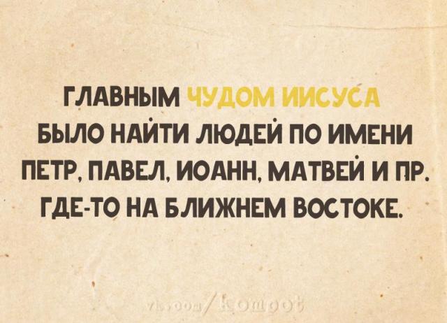 — Странно всё это: и зачатие непорочное, и по воде ходить могу, и отец - плотник...