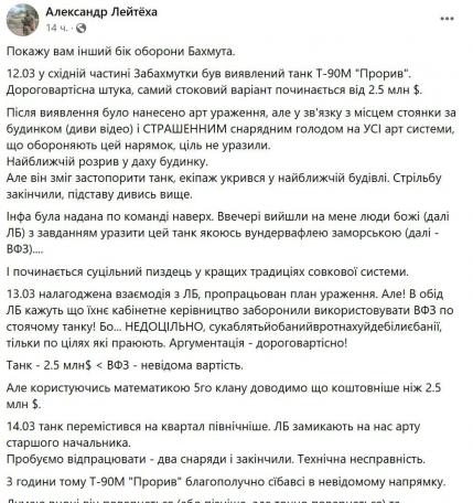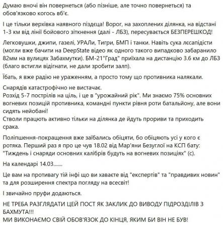 Из Бахмута для разумеющих мову. Сабж сетует на снарядный голод в вСУ