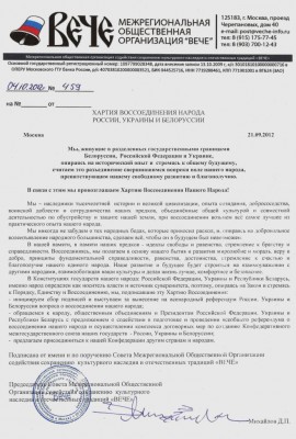 ХАРТИЯ ВОССОЕДИНЕНИЯ НАРОДА РОССИИ, УКРАИНЫ И БЕЛОРУССИИМосква 21.09.2012