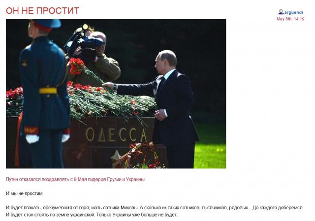 Изложенная в этом тексте информация была рассказана сотрудником правоохранительных органов. Когда кажется, что с противоположной стороны одни нелюди и фашисты, не следует забывать, что враг не монолитен. Даже у Гитлера был свой Штауффенберг. Есть люди, которых ужаснуло произошедшее в Одессе и среди членов хунты. Раскрыть его имя мы не имеем права — иначе в истории Украины появится еще один застрелившийся двумя выстрелами в голову «самоубийца».