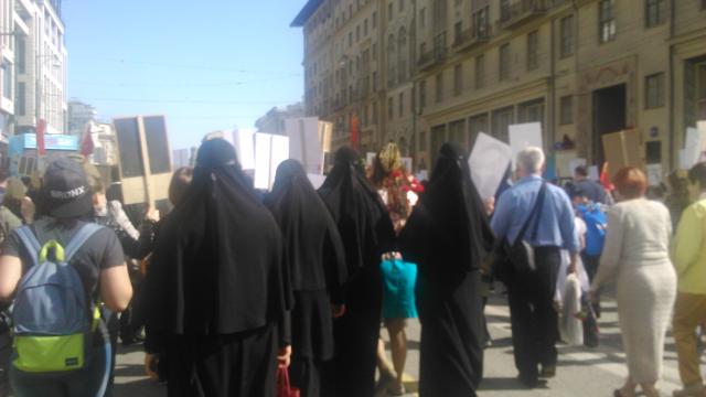 Потом стало подходить киевское священство, епископы во главе с Предстоятелем-митрополитом Онуфрием. Вслед за священниками двигались миряне с иконами Святого Георгия Победоносца, Святого Владимира, преподобного Серафима Саровского. Многие воодушевились, когда и в день праздника, и накануне Украинская Православная Церковь Московского патриархата в лице митрополита Онуфрия и его сподвижников явила столь необходимое сейчас бесстрашие. На заседании Верховной рады 8 мая митрополит Онуфрий вместе с двумя епископами - митрополитом Антонием (Паканичем) и епископом Ионой (Черепановым) - осудили войну и демонстративно не встали, когда Порошенко зачитывал имена «героев АТО». Так Церковь подала пример мужества своим верным чадам.