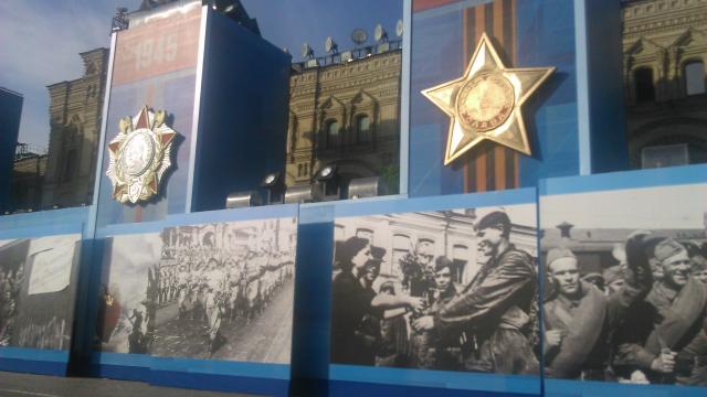 И даже не Белоруссия, которая таки пытается делить нашу общую ПОБЕДУ, выдумывая собственные символы - сраные ромашки с лентой белорусского флага, никакого отношения к той войне не имеющие.