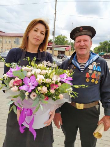 Жена работает в цветочном . Вынесла корзину цветов сфотать для их страницы в нете и увидела матроса и зная моё отношение сфоткалась. Помнят люди 22 июня...