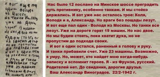 Записка А. Виноградова хранится в Центральном музее Советской Армии (инв. № 4/24475).