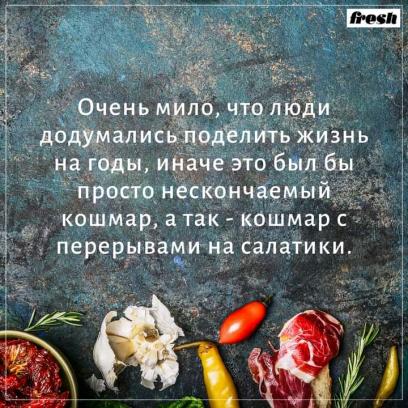 А нам пол-кастрюли оливье выбросить пришлось. Испортился. Не учли, что сына на эти праздники дома нет, да еще и сами день потратили на то, чтобы к нему съездить, вместо того чтобы доедать... ;) Ну да ничего, селедке под шубой не дали пропасть, а оливье жена пообещала на Старый Новый год заново сделать. Но поменьше. :)